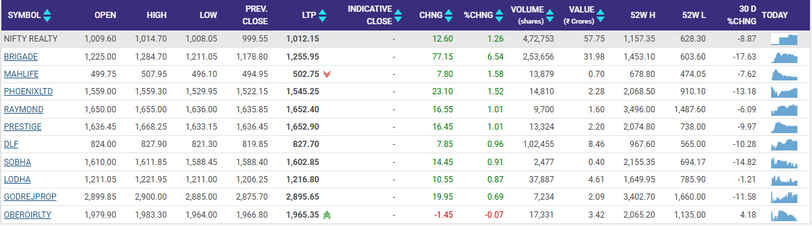 Nifty Realty was the highest gainer among other sectoral indices. The realty index was up 1.25% at 1,012.