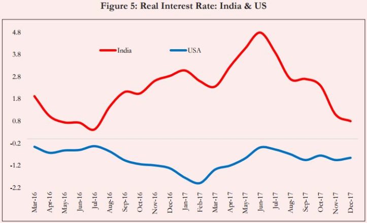 Critically, real interest rates have diverged substantially. Rates in the US have persisted at negative levels, while those in India have risen to historically high levels. Over the period of the boom, US real rates have averaged -1.0 percent, compared to India’s 2.2 percent, a difference of 3.2 percentage points (Figure 5).