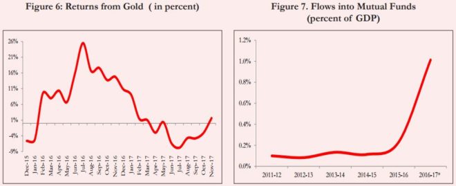 The price of an asset is not solely determined by the expected return on that asset. It is also determined by the returns available on other assets. As pointed out in last year’s Economic Survey, the government’s campaign against illicit wealth over the past few years—exemplified by demonetisation—has in effect imposed a tax on certain activities, specifically the holding of cash, property, or gold. Cash transactions have been regulated; reporting requirements for the acquisition of gold and property have been stiffened. In addition, rupee returns to holding gold have plunged since mid-2016, turning negative since mid-2017 (Figure 7).