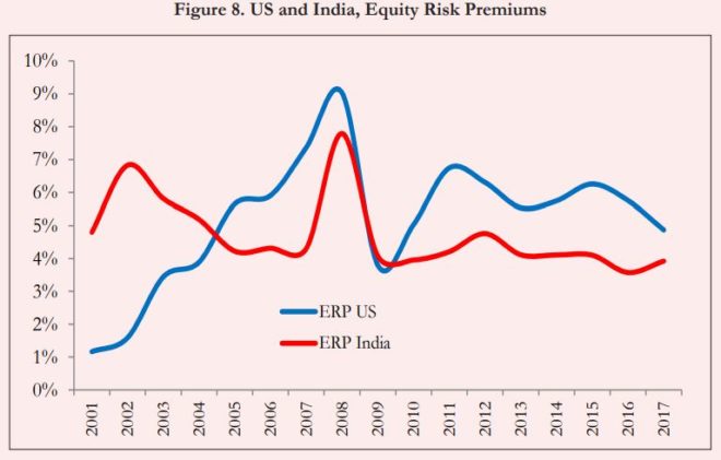All of this has caused investors to re-evaluate the attractiveness of stocks. Investors have accordingly reallocated their portfolios toward shares, with inflows through stock mutual funds, in particular, amounting in 2016-17 to five times their previous year’s level (Figure 8). Accordingly, the equity risk premium (ERP, the extra return required on shares compared with other assets) has fallen.