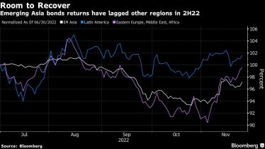 “For emerging-market Asia bonds in general, I think it will be a brighter six-to-12 months ahead into 2023 following two tumultuous years,” said Winson Phoon, head of fixed-income research at Maybank Securities Pte in Singapore. The market is getting better visibility on the terminal fed funds rate and on the potential need for regional central banks to slow down on tightening, while “the tide on bond positioning may be turning favorable,” he said.