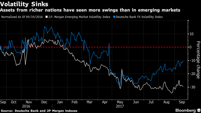 One of the world’s best trades this year, going long on emerging-market equities, is even troubling the bulls after handing investors twice the return from developed-country stocks. The MSCI Emerging Market Index’s almost 30 percent surge in 2017 has left valuations at the most expensive level since the start of 2010, a signal to JPMorgan Chase & Co. and Deutsche Bank AG that short-term weakness may be imminent despite remaining firmly in the bullish camp more longer term. Improving earnings growth and reform in economies from Brazil to India remain too good to pass up at UBS Asset Management.