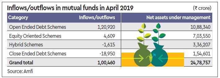 NS Venkatesh, CEO, Amfi, said, “Overall nervousness in the markets owing to credit events, rating downgrades and defaults, coupled with global trade imbalance, and uncertainty over outcome of general elections has led to investors getting into wait-and-watch mode. We expect investors would return in a big way, as corporate earnings improve further and once the general elections related uncertainty and global headwinds recede over the next few months. Mutual fund industry saw inflows of over Rs 1 lakh crore, while average net assets under management for April stood at Rs 25.27 lakh crore.