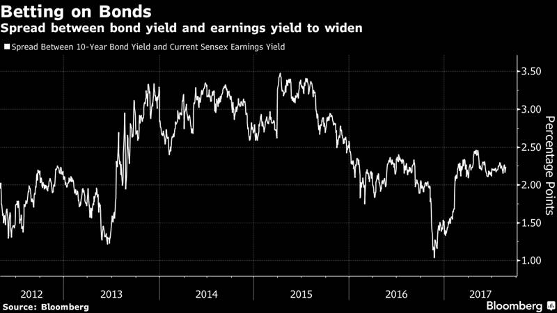 The benchmark 10-year sovereign yield has climbed 10 basis points since the RBI’s policy meeting and remains among the highest in Asia. The premium the government bond yield commands over the S&P BSE Sensex’s earnings has widened to over 220 basis points after rebounding from a seven-year low in November, data compiled by Bloomberg show.