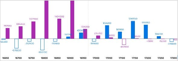 Nifty Put options OI distribution shows that 16,800 has highest OI concentration followed by 16,900 & 16,700 which may act as support for current expiry and on the Call front 17,200 followed by 17,300 & 17,100 witnessed significant OI concentration and may act as resistance for current expiry.