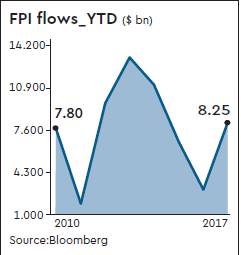 Long-term FPIs include sovereign wealth funds, multilateral agencies, endowment funds, insurance funds, pension funds and foreign central banks. CARE Ratings said that for the year 2017, FPI of around $25 billion may be expected primarily on account of the equity flows as there are limits to which debt investment can increase from hereon.