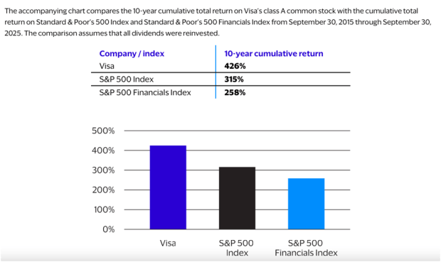 In fiscal year 2025, Visa reported a 11% growth in its net revenue, reaching approximately $40 billion. While processed transactions climbed to 257.5 billion, the total payment volume reached $14.2 trillion.