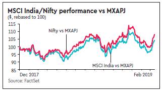 India’s sharp underperformance in the first two months of this year, signs of an uptick in demand and improving asset quality trends leading to a better-than-expected Q3FY19 earnings and pick-up in foreign flows led the brokerage to upgrade their view. The risk/reward appears favourable again for India, the brokerage note added.