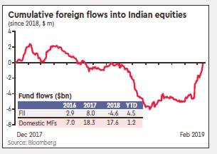 The rally this year has been driven by purchases of overseas investors that have bought stocks worth nearly $5.6 billion, highest among the seven emerging markets that provide exchange data on FII activity. This year’s inflow is a big swing from last year’s outflows of $4.2 billion. On the other hand, between January and now, the domestic institutional investors (DIIs) sold shares worth $160 million, Bloomberg data showed.
