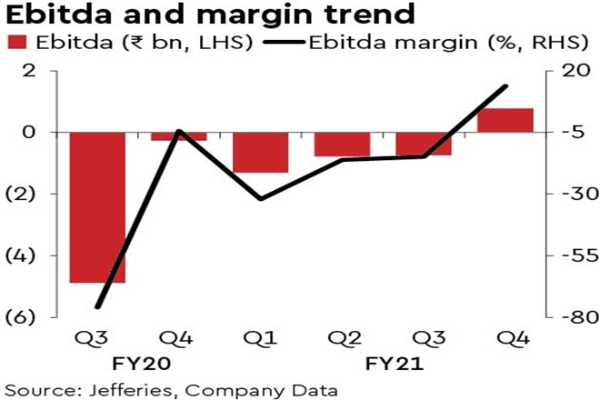 GRIL’s India business saw a good recovery in H2FY21 and delivered higher profitability. In Q4FY21, electrode prices began to recover from their lows, leading to inventory gains. In fact, GRIL posted positive Ebitda in Q4 after five quarters of operating losses. However, the company’s German operations (18,000 MT capacity) were affected by extended lockdown, lower utilisation and weaker ASPs.