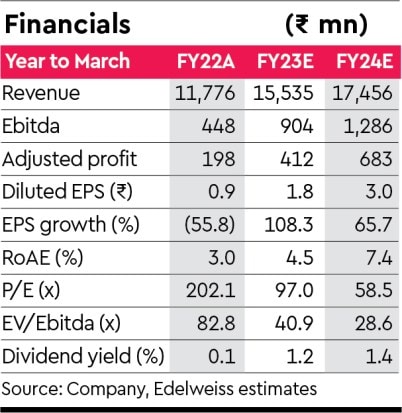 In the EV business, GRV is not looking to set up a captive financing unit. Tie-ups with financiers can take care of financing needs. Currently, it has ~250 dealers; the plan is to expand it to ~500 by the end of FY23. Dealers are franchises, not company-owned units.