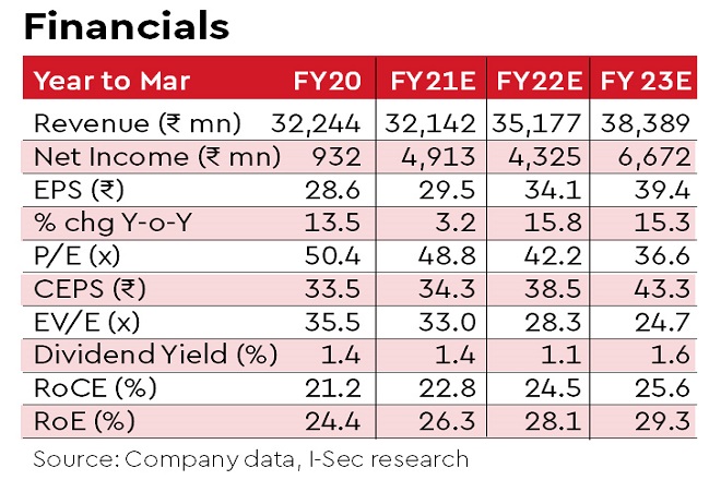 FY21 estimates would optically appear lower due to Zinetac (ranitidine) sales in the base. However, we expect FY22 to report strong growth both on revenue and earnings front. We expect 6.0% revenue and 11.3% PAT CAGR over FY20-FY23e driven by growth in power brands and key therapies like vaccines, respiratory and VMN. Minimal capex requirement would aid cashflow generation of ~Rs 20 bn over the next three years.