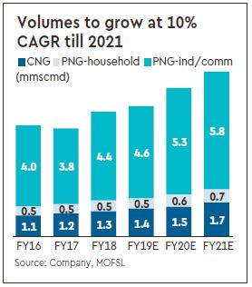 Newer investments in Morbi and nearby areas are increasingly from larger, organised players. The National Green Tribunal (NGT) order should also bring a structural shift in investment projects towards greener fuels. Impact could be a precursor for other regions; the chemical/ pharma belt of Ankleshwar-Bharuch-Vapi is equally polluting. Competition from coal caused sales at Surat to decline from earlier peak of 1.8mmscmd to 0.8mmscmd. Emphasis on cleaner fuels should propel sales across the state.