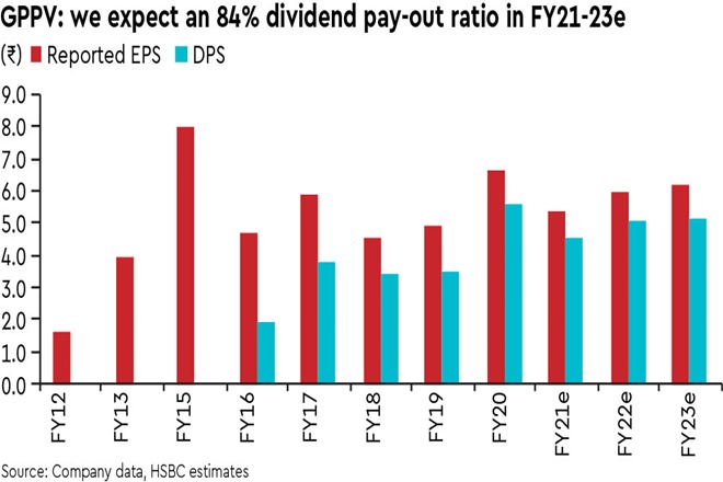 Reiterate Buy; raise DCF-based TP to Rs 110 (from Rs 90): While the COVID-19 headwinds will likely depress container trade and profits in FY21e, we argue that GPPV is better positioned vs past down cycles and its peers, with minimal capex requirements, a net cash position, parent group support (40-45% of container throughput), and attractive forecast dividend yield (5.3% in FY21e).