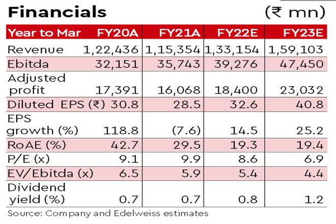 Outlook: Attractive–GSPL is the key beneficiary of additional LNG to be imported in India to bridge the demand-supply gap. Its net debt/equity plunged to 0.1x and OCF remains healthy at Rs 29 bn in FY21. We retain ‘BUY/SO’ with revised TP of Rs 342 (earlier: Rs 278) as we roll over valuations to FY23E and it currently trades at 3.0x PE (ex-Gujarat Gas).