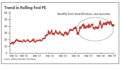 Maintain Buy: We believe that a strong product slate, market share, robust structural drivers (holistic consumption play), entrenched distribution, new launches and a pristine B/S should continue to support HAVL’s premium multiples, now at 45x/35x/29x PE on FY20/21/22e. Maintain Buy with a revised price target of Rs 790.