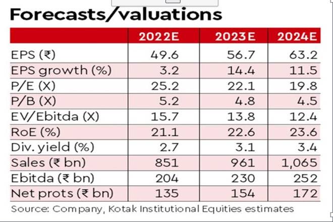 Cut EPS estimates by 2-4%: Our 2-4% EPS cut is products-related and accounts for 8% Fair Value in our SOTP. Our valuation multiples are largely unchanged. We value the services business at 25X Sep 2023 NOPAT and products business at 7X Sep 2023 Ebitda leading to SoTP-based Fair Value of `1,400. We expect HCLT to close the gap in the growth rate with peers in FY2023 even while the products business constrains overall growth. HCLT can sustain double-digit growth in the services business. The stock is inexpensive and trades at a sharp discount to peers.