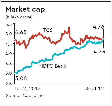 The market capitalisation of HDFC Bank touched a high of Rs 4.73 lakh crore. However, in the afternoon trade, shares of TCS regained the lost ground and ended the session with a market capitalisation of Rs 4.76 lakh crore, data from the stock exchange showed.