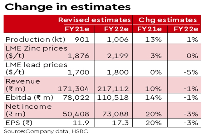 Reiterate Hold: We raise our Ebitda estimate for FY21e by 14% on higher volumes and as we incorporate our higher zinc price estimates for CY20 as published but partially offset by the rising INR. However, our Ebitda estimate for FY22e remains largely unchanged. So, we maintain our TP of Rs 200, which is based on 6.5x our Ebitda estimate for FY22e. We remain cautious on the zinc price outlook. We reiterate Hold rating given the potential for volume growth and a strong dividend yield, which should support HZ’s valuation at the current level.