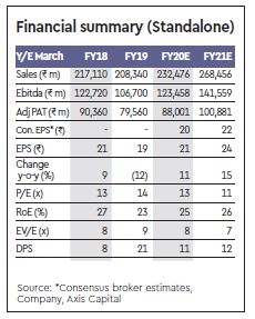 Valuation: We cut our FY20/21 EPS estimate to Rs 22/24 (vs. Rs 23/26 earlier) to factor in reduction in volumes estimate by 12/4% to 0.96/1.1 mnt. We increase our EV/Ebitda multiple by a notch to 6x FY21e as visibility improved on stabilisation of new capacity for the company. Our revised target price stands at Rs 285 (vs. Rs 278 earlier), which implies 5% upside.