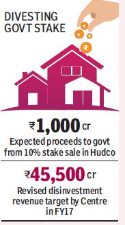 Housing and Urban Development Corporation’s (Hudco) initial public offer (IPO) to divest the Centre’s 10% stake in the company could hit the market in mid-March, ending a five-year drought of PSU IPOs. The stake sale in Hudco could fetch the government up to R1,000 crore, the company being valued at around R10,000 crore. Currently, the government owns 100% stake in the techno-financial institution engaged in the financing and promotion of housing and urban infrastructure in the country.
