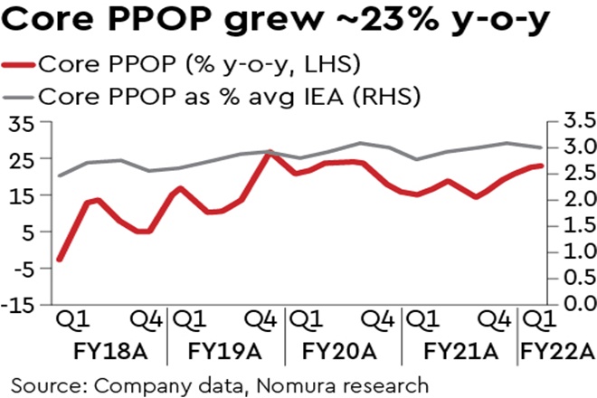 Loan and core PPOP growth were positives: Loans were up 0.7% q-o-q with retail +1.2%, SME -1.7%, domestic corp. +0.1%. Sequential retail loan growth was driven by dealer financing, loan against shares and mortgages. The sequential loan mix may have helped +5bp improvement in NIM. Core PPOP grew ~23% y-o-y, as a result. Savings balance growth was robust with CASA (avg.) ratio of 43.7%.