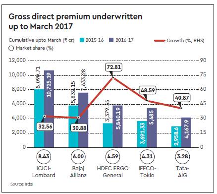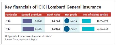 In 2016-17, ICICI Lombard reported a 32.56% year-on-year growth in its gross direct premium at Rs 10,725.19 crore. In the previous financial year, ICICI Lombard had a market share of 8.43%, the highest among private insurers.