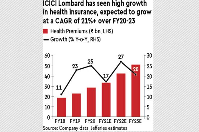 17% CAGR in profit over FY20-23: Two key drivers of growth will be health insurance & normalisation in motor-business. Health insurance can emerge as key growth driver in post Covid-era — penetration can rise and we see market doubling in 5 years. In motor, pick-up has been better than expected. We see scope for Combined Ratio to fall to 98% that will compensate for lower investment income.