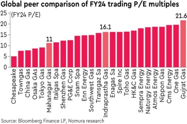 City gas distributors (CGDs,) in our view, are key beneficiaries from the Kirit Parikh committee’s recommendations— implementing a ceiling price enables a 24% cut in input gas prices for the CGDs priority sector (CNG and domestic PNG) volumes – 80% for IGL, 85% for MGL and 25% for GGL as of FY2022. The annual escalation of $0.5/mmbtu also shields the sector from an otherwise significant uptick in input cost in FY24F; given long-drawn geopolitical issues and the European gas crisis, domestic gas prices were set to rise 48% to $12.5/ mmbtu in 1HFY24 from 2HFY23 levels. The enforcement of the ceiling prices lifts a key overhang for IGL and MGL and greatly improves visibility for earnings over the next five years, in our view.