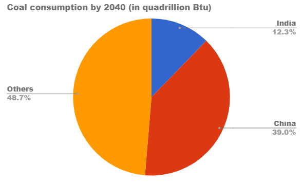 China’s total consumption of energy generated from coal will fall to nearly 73 quadrillion Btu (British thermal units), while India will stand close to 23 quadrillion Btu in 2040, the US-based Energy Information Administration (EIA) data showed. A quadrillion has one thousand trillions. The world consumption will be close to 160 quadrillion Btu.