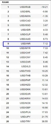 Over the past one month, Rupee has been an outperformer, thanks to the fall in oil prices, robust FPI flows and hopes of Indian bonds being included in the global bond indices. However, in spite of the net FPI flows being negative $22.2 billion YTD, Rupee has done quite better than its peers. The table below shows that inspite of FPIs pulling out over $22 billion from Indian stocks and bonds, Indian Rupee has ranked as 7th out of the 26 major currencies. One of the major reasons for this kind of performance is massive intervention from the central bank.