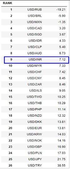 Over the past one month, Rupee has been an outperformer, thanks to the fall in oil prices, robust FPI flows and hopes of Indian bonds being included in the global bond indices. However, in spite of the net FPI flows being negative $22.2 billion YTD, Rupee has done quite better than its peers. The table below shows that inspite of FPIs pulling out over $22 billion from Indian stocks and bonds, Indian Rupee has ranked as 7th out of the 26 major currencies. One of the major reasons for this kind of performance is massive intervention from the central bank.