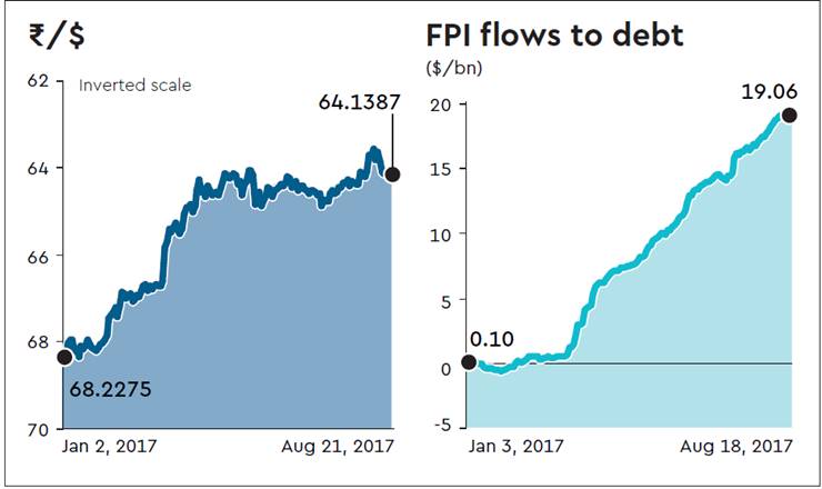 Ashwini Kapila, managing director and head of financial institutions group at Barclays India, points out that insurance IPOs are expected to see considerable FPI interest, driven by strong prospects of the financial services sector. “The India growth story will first reflect in the financial services space and you are already seeing this in the valuations of private sector banks and NBFCs. Given the robust pipeline and strong interest in Indian equities from FPI, it is reasonable to expect insurers to attract $1.5bn of inflows via IPOs,” Kapila observes. On Monday, the rupee closed flat against the US dollar at 64.14. On a year-to-date basis, the currency has provided a return of 5.9%.
