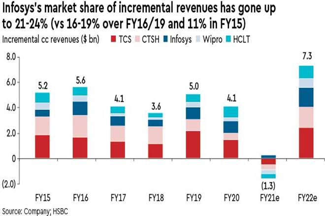 Also, in our view, 50% of the global IT spend occurs in-house, which may move a bit to outsourcing post COVID-19. Infosys benefits from these industry tailwinds (including vendor consolidation) and market share gains. Infosys’s market share of incremental revenues has gone up to 24% (vs 18% of total revenues).