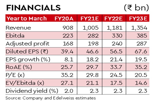 Management remains confident of the strength in business momentum and strong market share gains. In light of Infosys’s robust revenue growth and consistent execution, we are raising the TP from `1,850 to `2,124 while rolling forward the valuation to Q1FY23e.