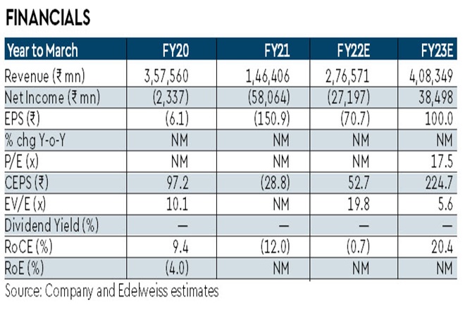 Upgrade to BUY with a TP of Rs 2,000 (Rs 1,515 earlier) based on 20x (unchanged) FY23E EPS (core EPS earlier) of Rs 100 (unchanged): We now base multiples on normal earnings and not core income (this excludes investment income). This is due to the strategic importance of cash in the business (even more after Covid) and the fact that SLB gains will largely flow through other income in the P&L apart from lower depreciation. Successive Covid waves and increase in crude prices pose risk to earnings.