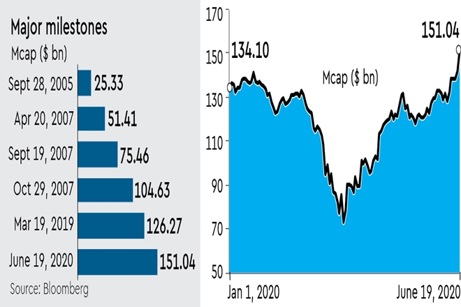 Along with the rights issue of Rs 53,124.20 crore, the company mopped up a colossal Rs 1.69 lakh crore in less than two months. There are only 60 companies in the world as of Friday with a minimum market capitalisation of $150 billion, Bloomberg data showed.