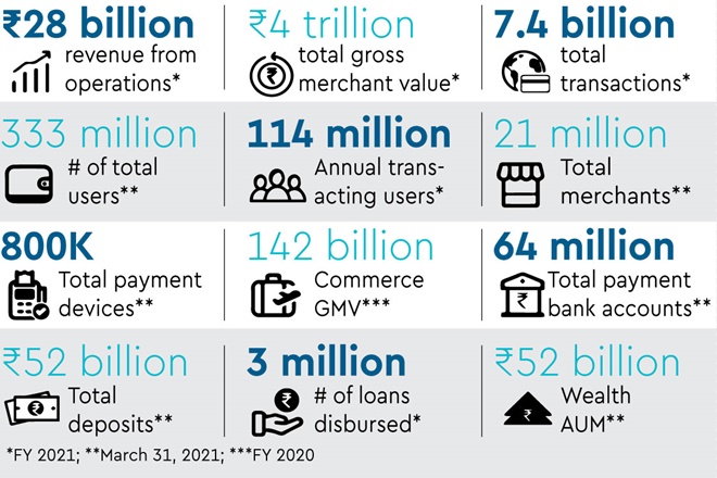 According to RedSeer, Paytm is the largest payments platform in India with a GMV (gross merchandise value) of Rs 4,033 billion in FY21. The company is estimated to have an overall payments transaction volume market share of nearly 40% and wallet payments transaction market share of 65-70% in India as of FY21.