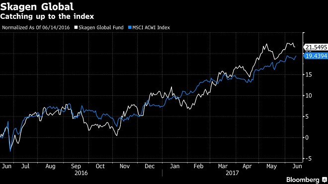 Those rates are bound to stay low for longer, steering capital from bond markets to equities, said Schanke, who was also a former chief investment officer and head of trading at Norway’s sovereign wealth fund, the world’s biggest. The flagship Skagen Global fund has returned 11.1 percent so far this year, beating its index by about 1.4 percentage point. “You can sit and hope for a normalization for a long, long time, but in the end, if you’re not getting returns from your bond portfolio, you need to find alternatives,” Schanke said. “The flow of capital into the stock markets strengthens my view that there’s no immediate danger for a correction in the short term.”