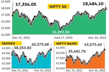 The Sensex closed at 62,272.68, up 762.1 points or 1.24% from Wednesday, while the Nifty50 ended up 216.85 points or 1.19% at 18,484.10.