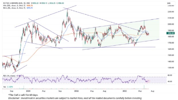 Kotak Bank technical stock call: Chart showing 200 MA, 50 EMA