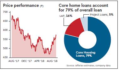 (`700 mn including interest) pertaining to a large account. While GNPA usually rises in Q1, the jump is higher than usual seasonality and is a concern. LICHF’s mix of project loans have been steadily rising, but its track record on underwriting project loans remains patchy. Q1 ECL provision was ~0.54% (0.49%). Credit cost under Ind AS has increased to 0.38% in Q1 (0.56% Q1 FY18 vs. 0.27% as per GAAP).
