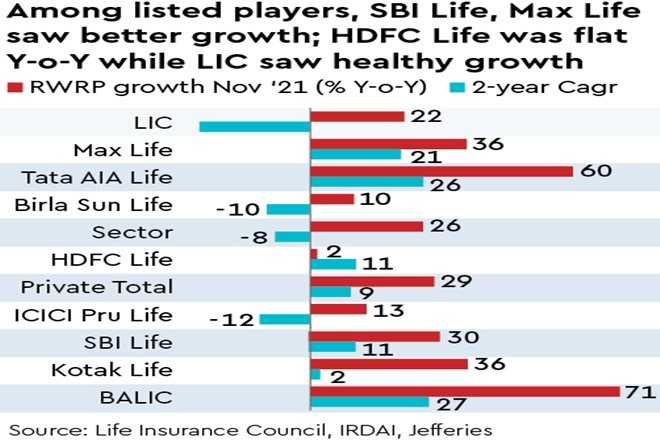 Saving products likely stayed strong, credit protect led on term side: By product, we believe non-par savings has likely stayed course with intra month lower short end rates helping. Annuities present structural opportunity and would have contributed fairly to overall growth in Nov’21. ULIPs have also likely remained strong even as capital market was somewhat volatile during the month. On retail term growth would still be mostly a Q4 story post reinsurance price hikes, in our view. Credit protect would have stayed strong on improving disbursal trends.