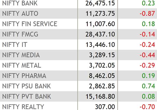 7:55 am: The sectoral indices of National Stock Exchange (NSE) ended mixed on Monday with Nifty PSU Bank index leading the charge and Nifty Auto index being the biggest loser at the closing on Monday, 14 May 2018, ahead of Karnataka Elections Results.