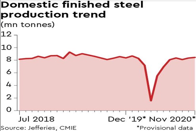 Global Industry: The global commodity outlook and prices seem to be improving, aided by Chinese macro data and positive vaccine news. Steel demand has improved sequentially. Over July-Sept, according to the World Steel Association, most countries increased steel production on a q-o-q basis, although the pace of recovery depended on the severity of the pandemic.