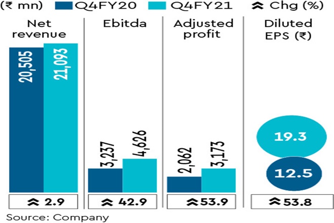 Picking up pace: After slow growth in H1FY21, MTCL has delivered successive quarters of strong growth. The company ended FY21 with a revenue decline of 1.1% (up 8.1%, ex-TTH). In Q4FY21, amongst verticals, only BFSI saw a marginal dip q-o-q. Travel & Hospitality and Retail, CPG & Manufacturing, which were hit the hardest at the start of Covid-19, posted strong sequential growth of 16.1% and 8.6% q-o-q, respectively. All geographies clocked q-o-q revenue growth. The company recommended a dividend of Rs 17.5 in Q4FY21 (FY21 dividend: Rs 25).