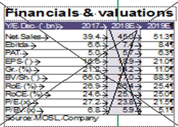 Retains guidance for now: HEXW had a strong start to the year, and reiterated benefits of seasonality that it expects to accrue in Q2/Q3CY18. The ask rate to meet the guided band stands at 2.7-3.9%, which is achievable. It expects earnings growth for the year to mirror revenue growth.