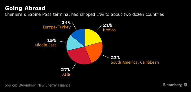 Since the first tanker full of LNG set sail from Cheniere’s Sabine Pass in Louisiana last February, America’s shale gas has landed in more than 20 countries including India, South Korea, Mexico, and Japan. The trade has set the U.S. on a path toward becoming a net gas exporter for the first time in decades, potentially surpassing Australia and Qatar to become the world’s largest LNG supplier by 2035.