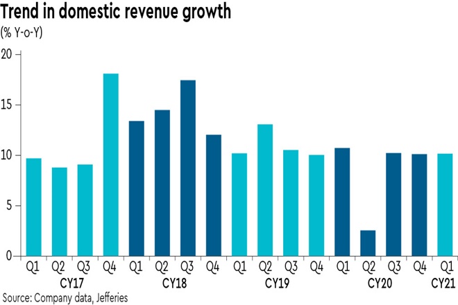With 10% YoY growth, Nestle’s domestic revenues are in line with our expectations. Slightly better GMs & lower staff costs helped and Op Ebitda growth at 16% is ahead. Lower other income, however, resulted in an in-line outcome at the net level. Management is confident of managing disruption arising from the second Covid-19 wave although the bigger concern at the moment is on margins, following a sharp rise in input prices. We retain estimates & our Hold rating.