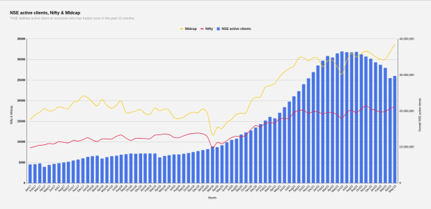 “Markets are back at all-time highs, but it doesn’t feel like a bull run because retail activity isn’t picking up. Active clients on NSE, Google & social media trends are way below all-time highs. Unlikely that activity will pick up given the higher interest rate environment,” Nithin Kamath tweeted.